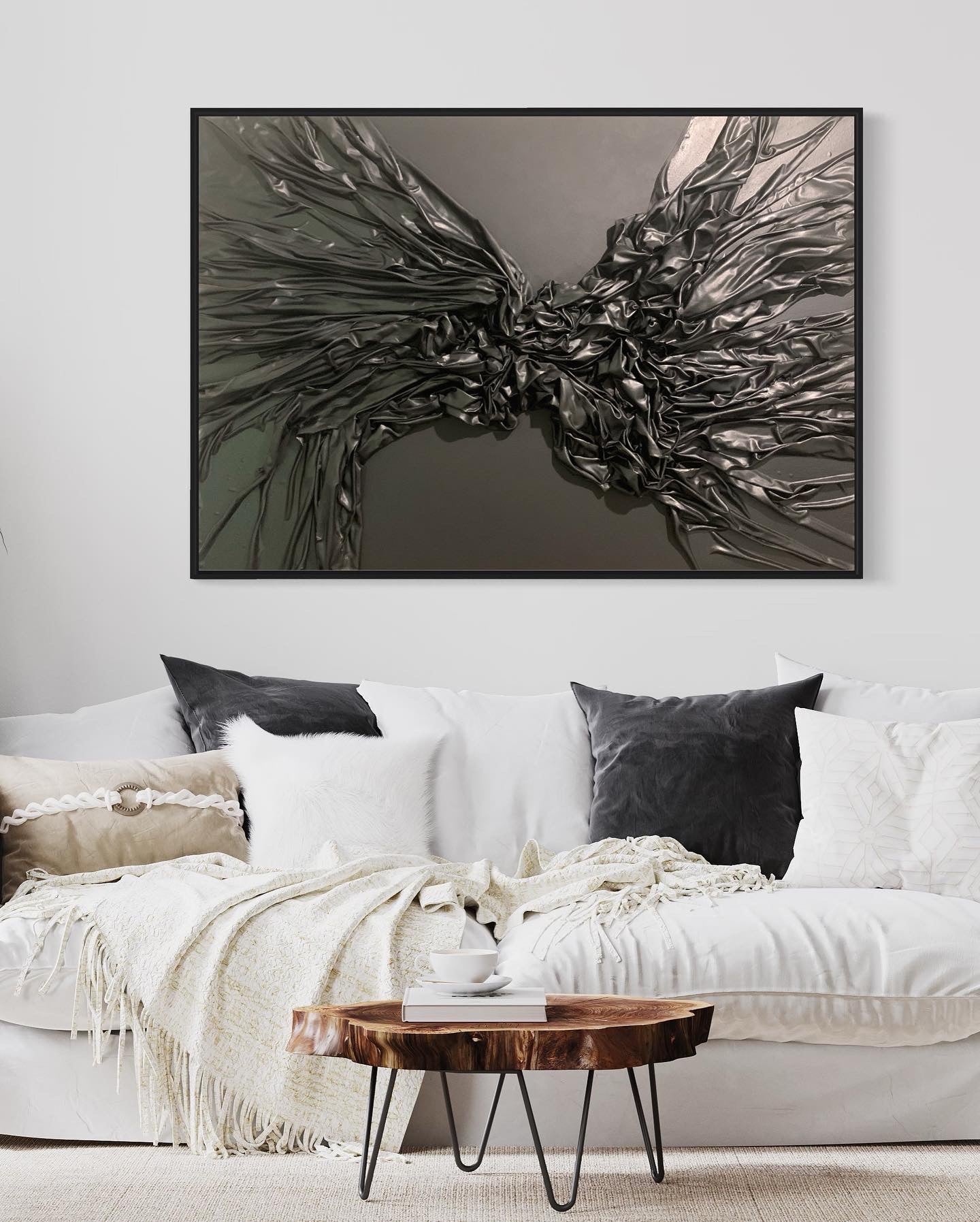 Floating Black Frame, Mixed Media on Canvas