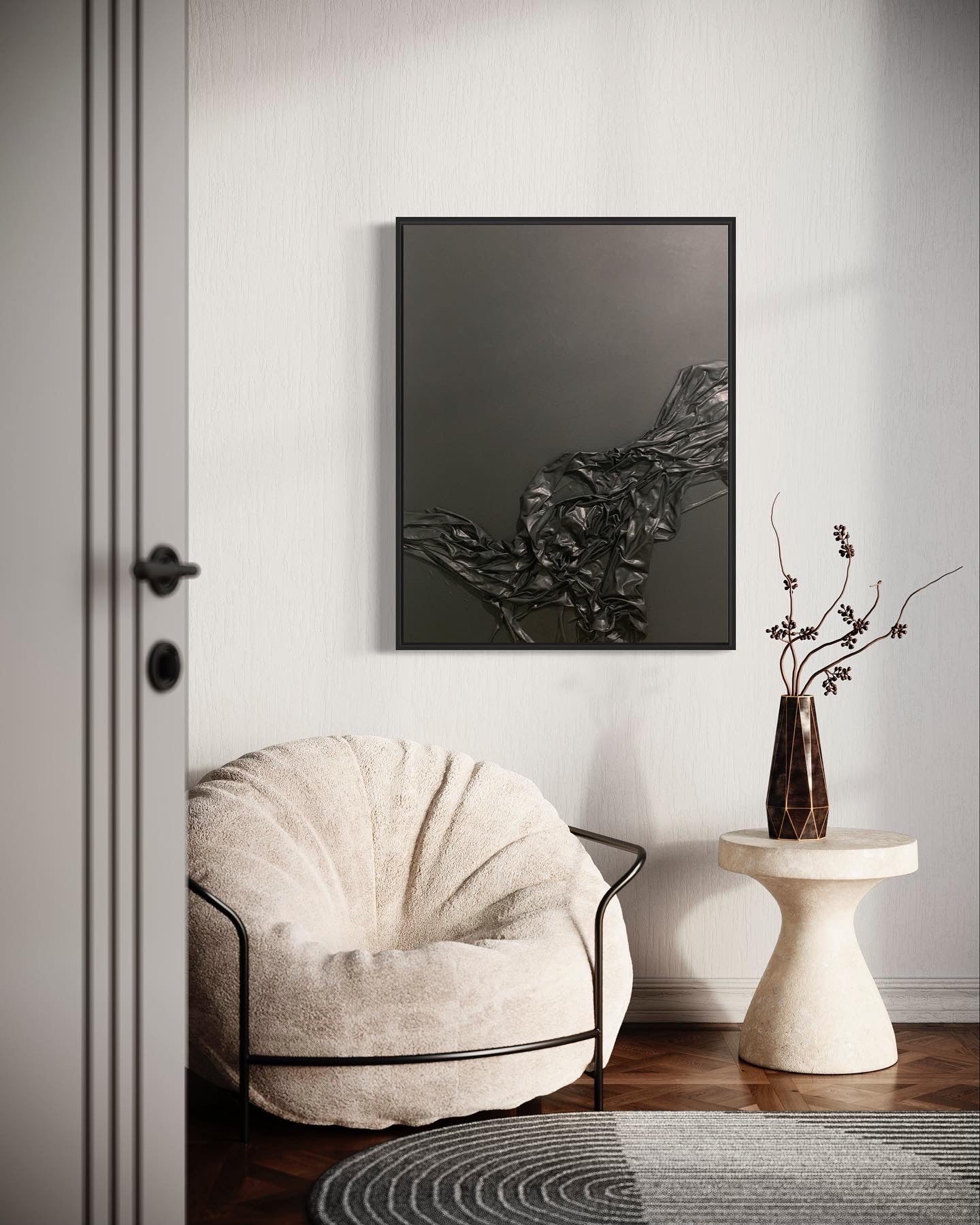 Floating Black Frame, Mixed Media on Canvas.
